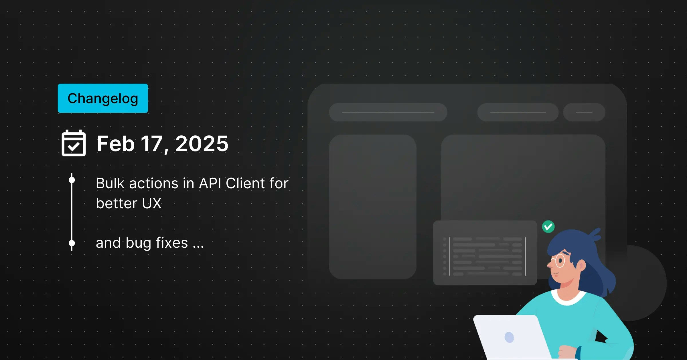 - Bulk Actions Support in API client: Select multiple requests and collections to move, duplicate, export, and delete in bulk. Learn More