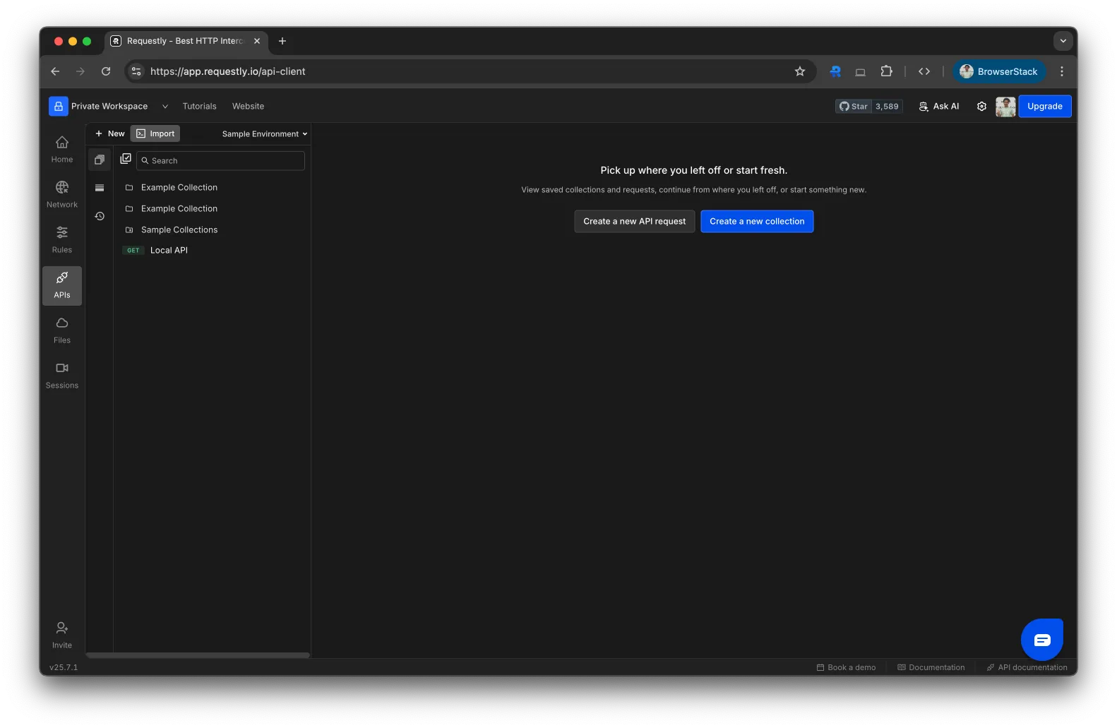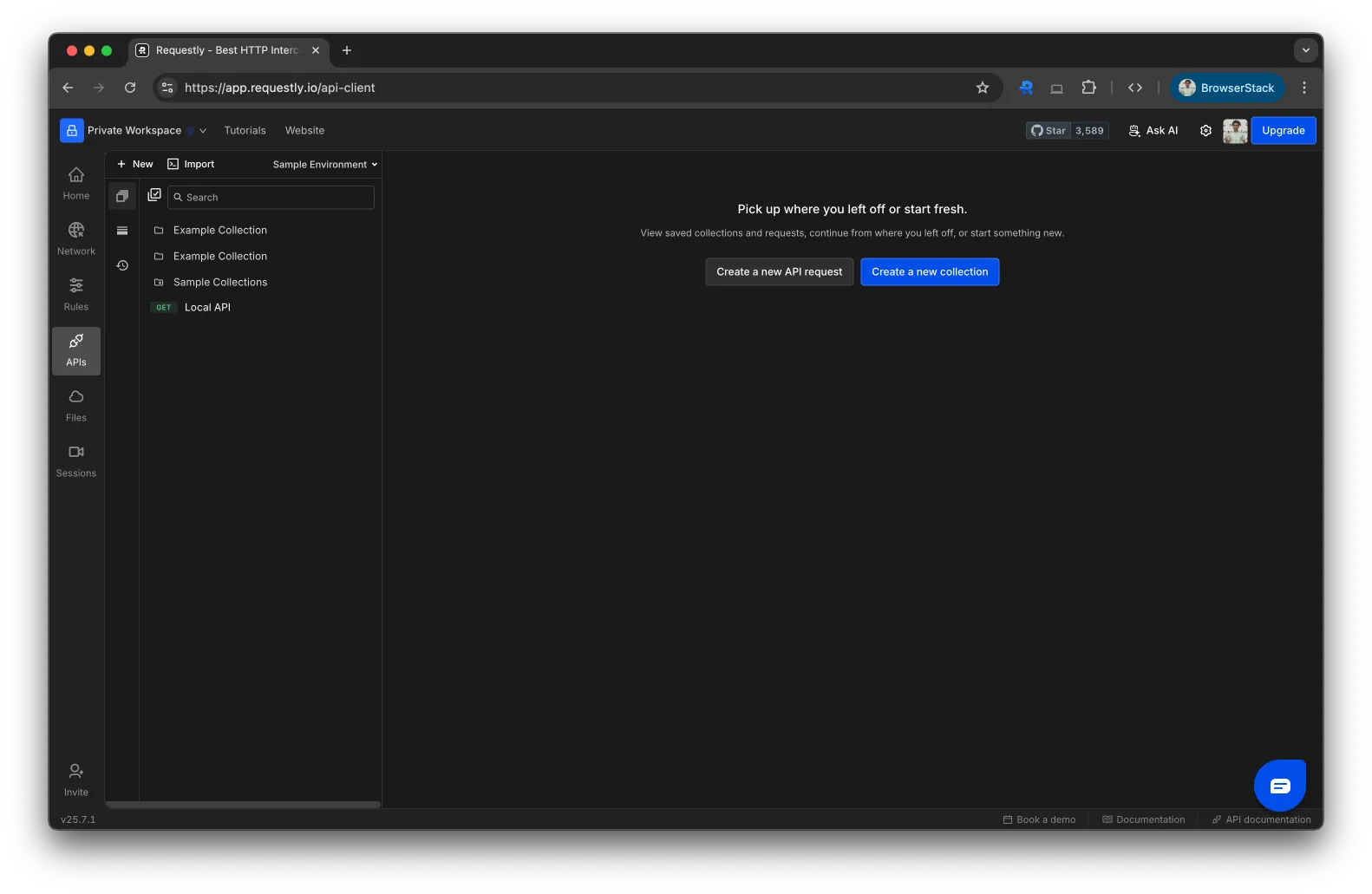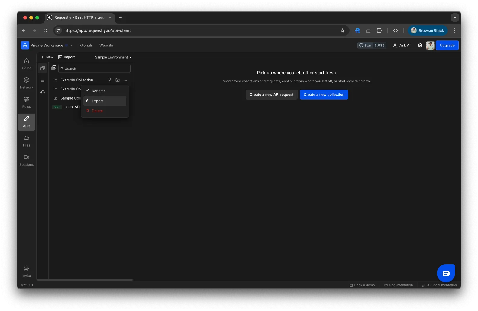 Download Requestly and open the dashboard. From the sidebar, navigate to APIs.