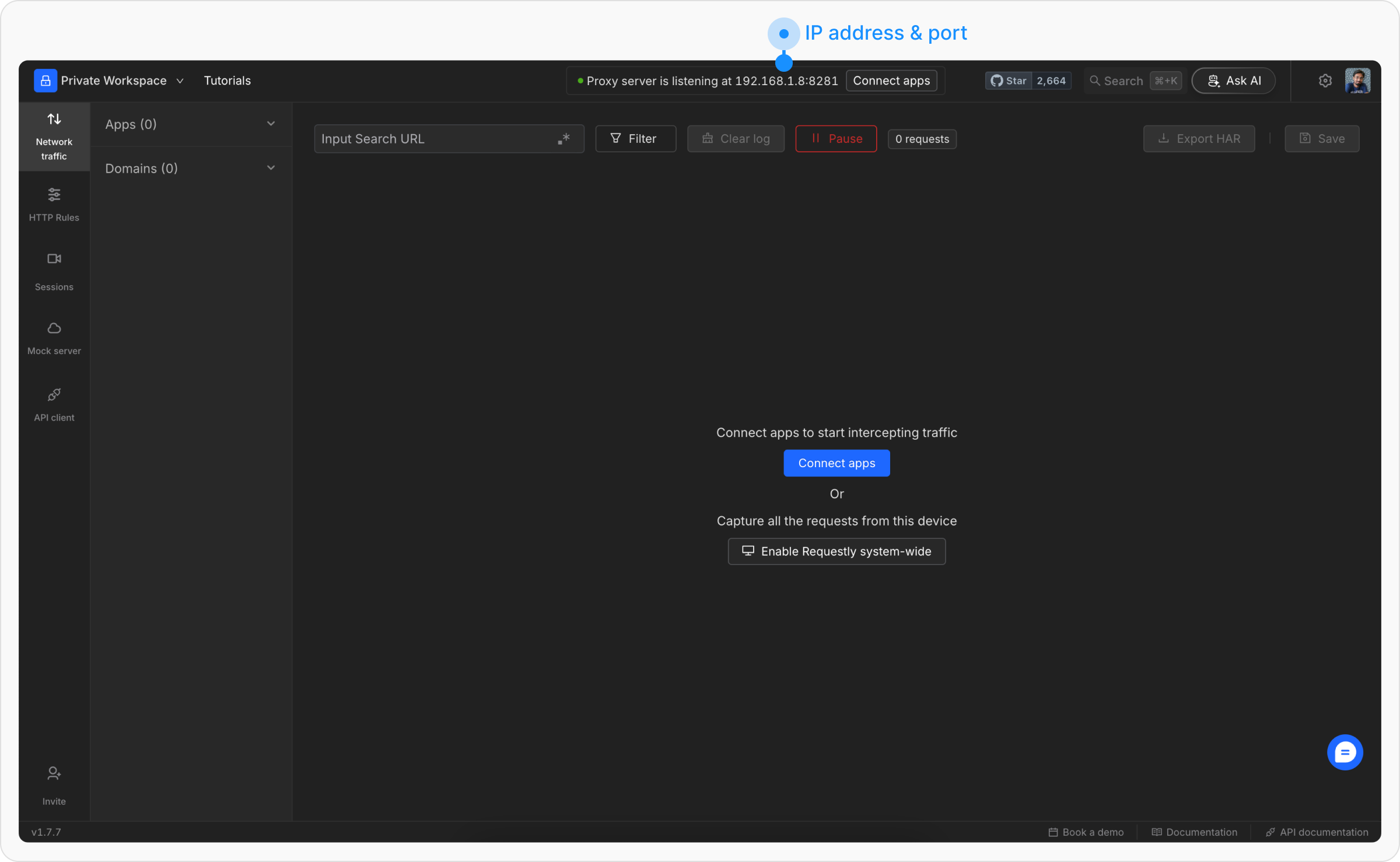 Manual. Then, enter the IP address of the computer and the proxy port. You can find these on the top banner of the Requestly desktop app.