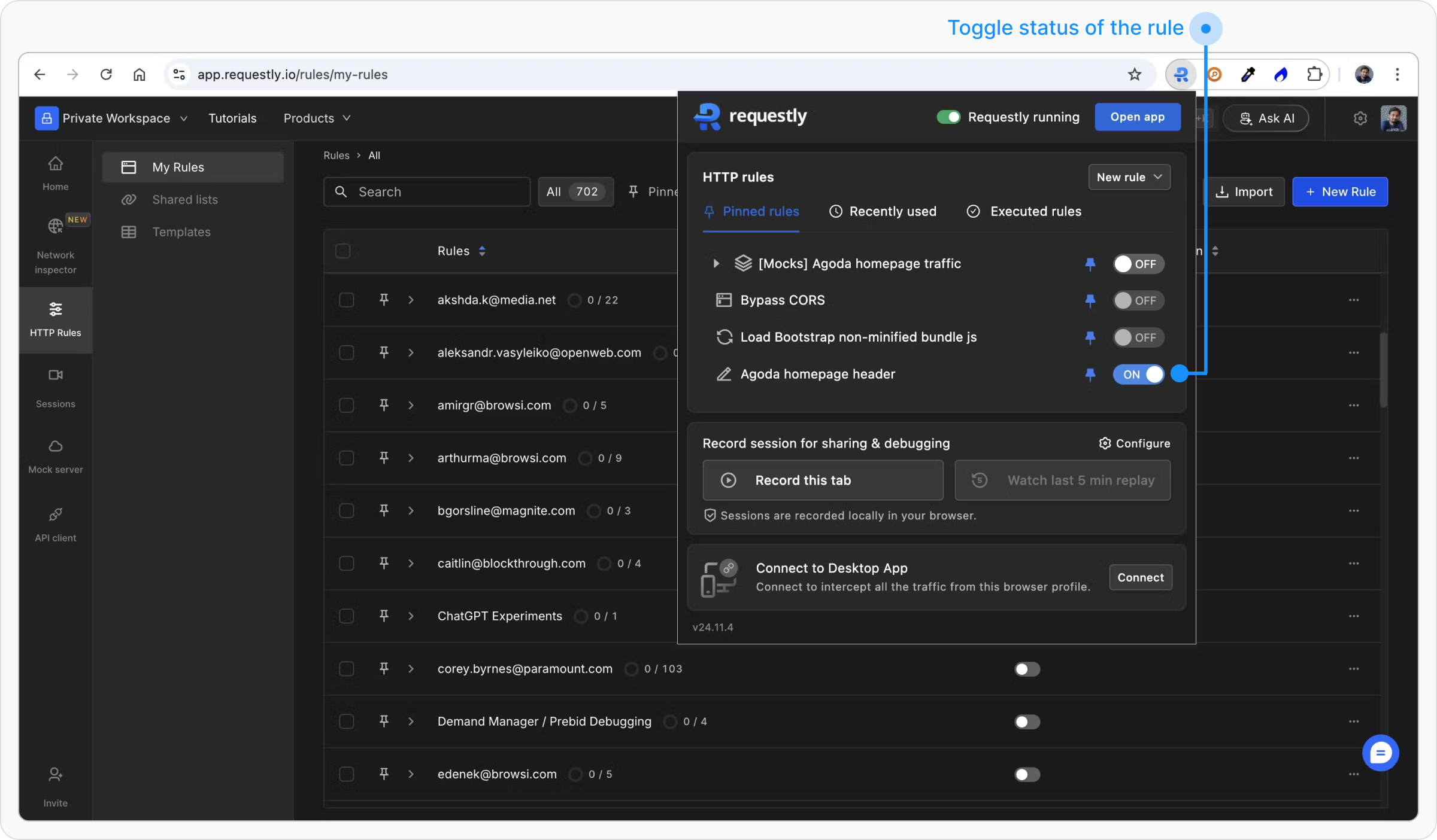 To pin a rule in Requestly, follow these steps:1