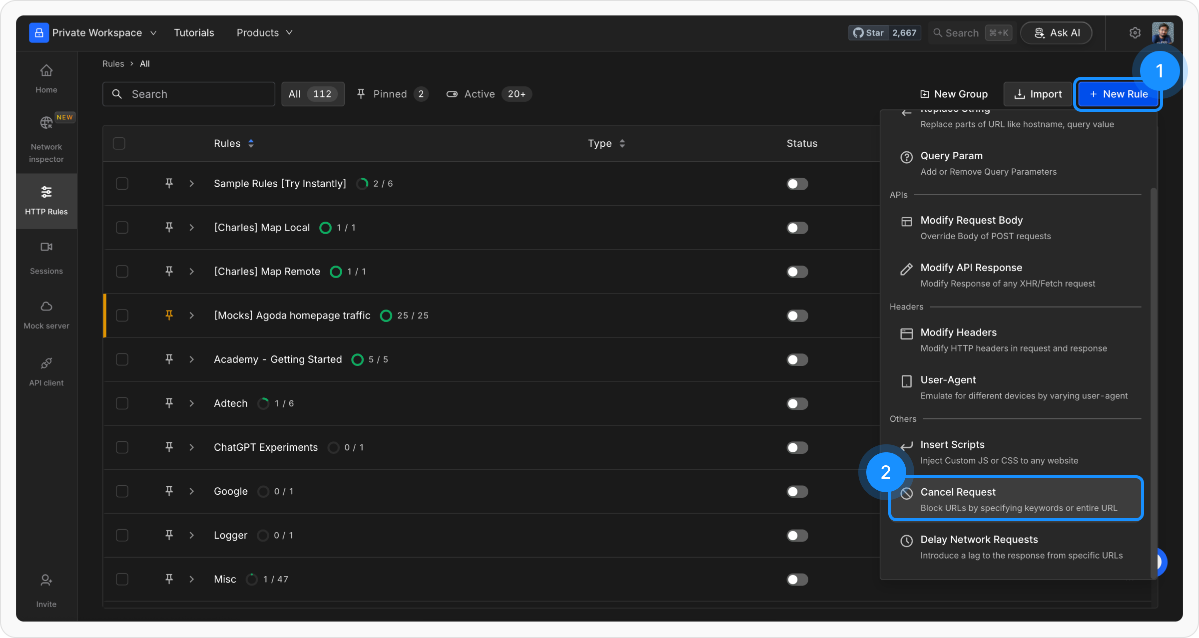 Cancel Request Rule is a feature used to block network requests, allowing users to avoid distractions or test specific error scenarios effectively. This guide explains how to configure and utilize the Cancel Request Rule in your workflow.