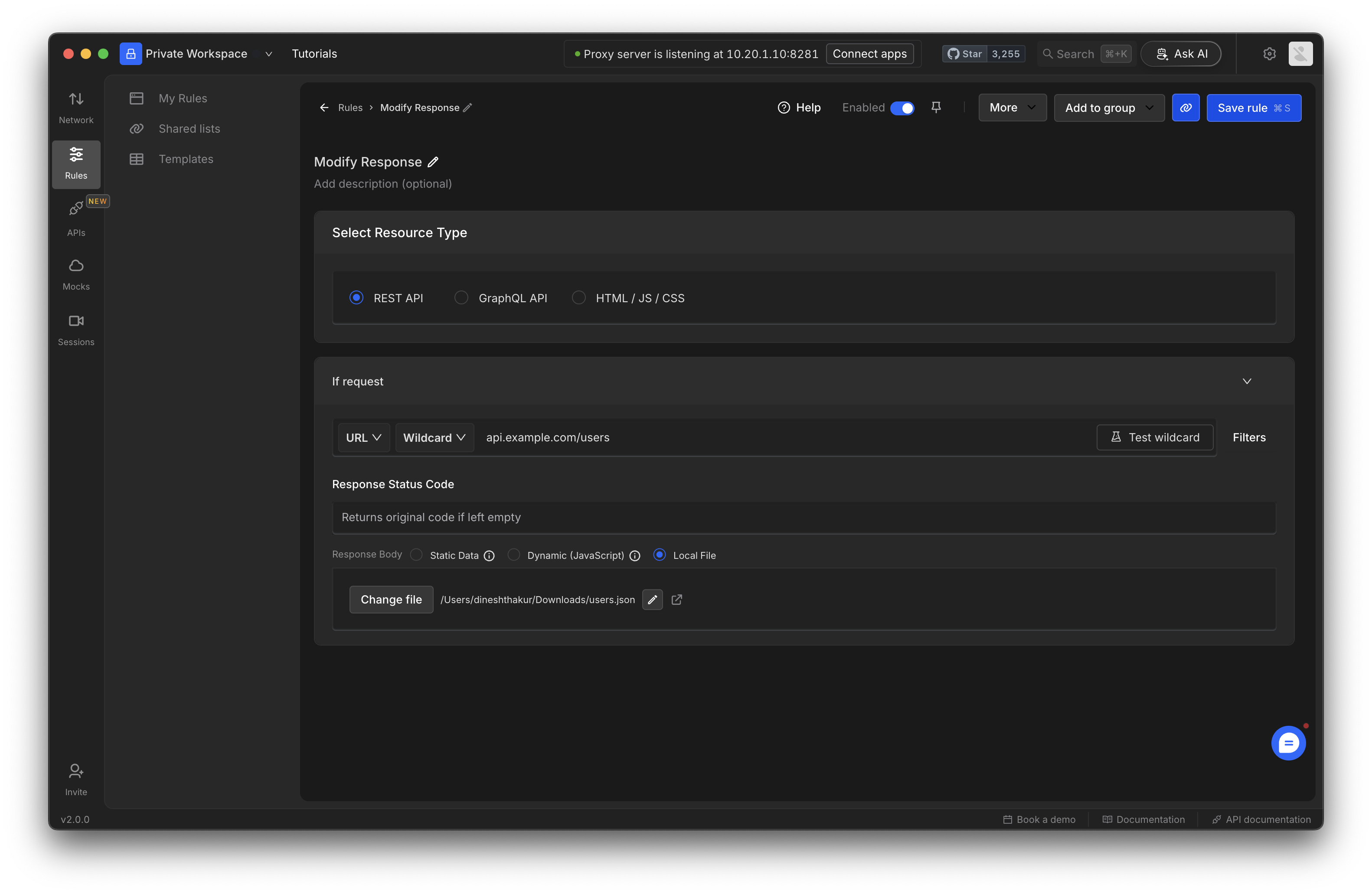 Modify API Response Rules are useful in several scenarios:- Frontend Development: Work seamlessly even if the backend is unavailable or incomplete.
