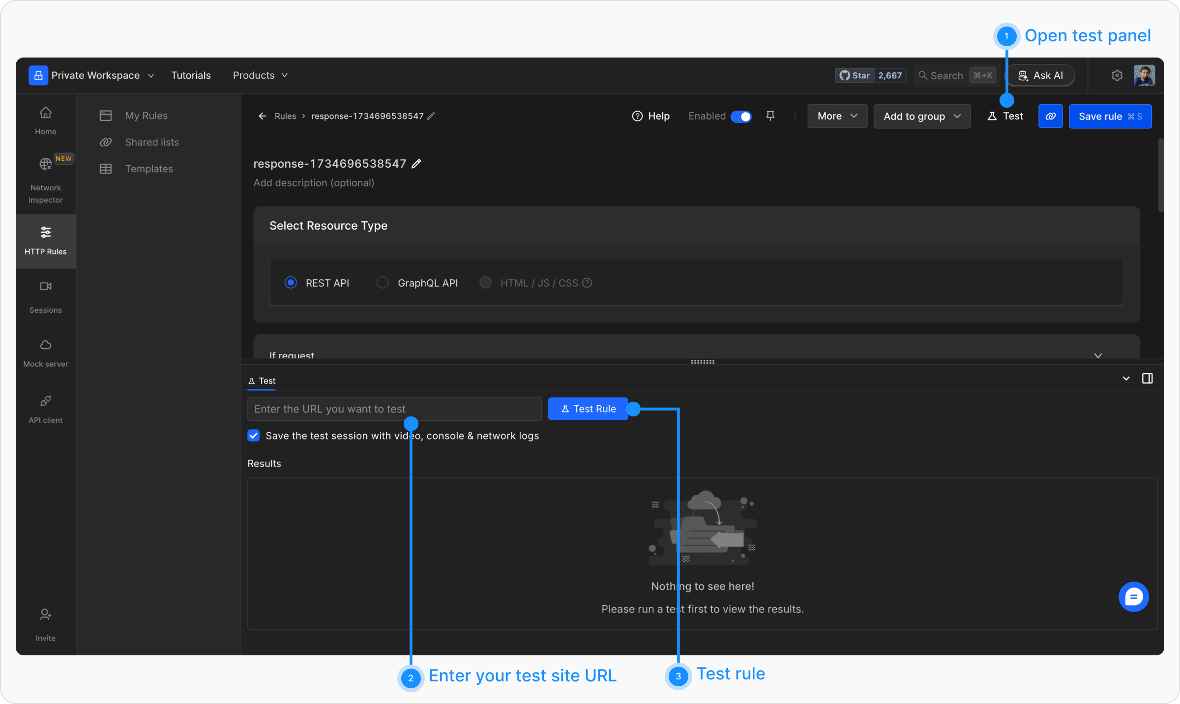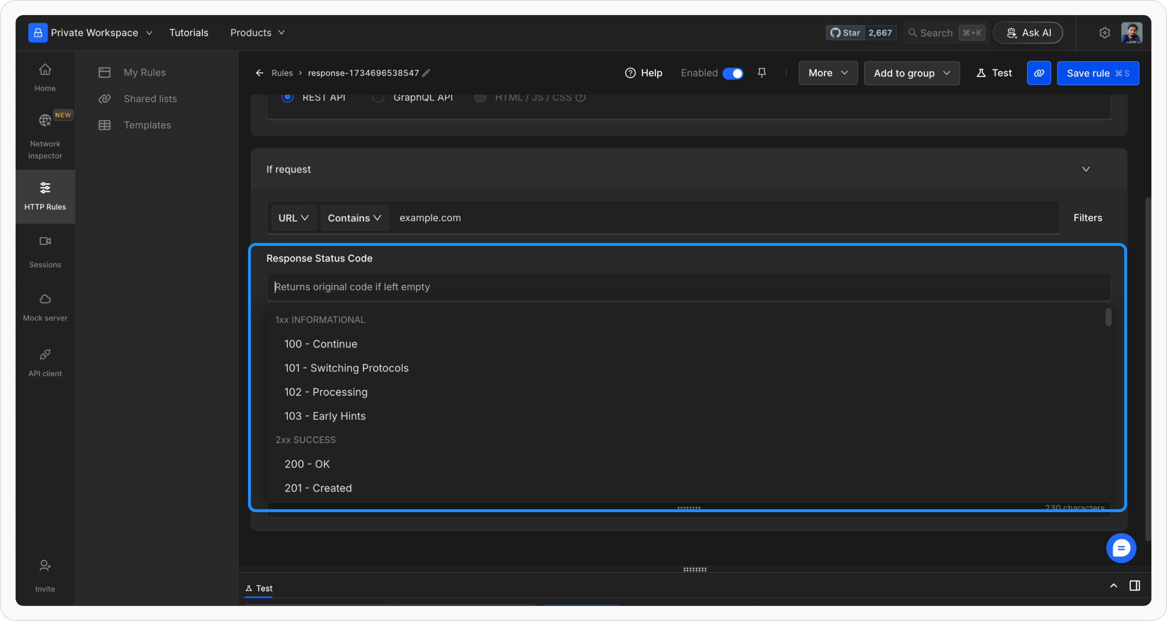 Navigate to the HTTP Rules section in the Requestly app. Click