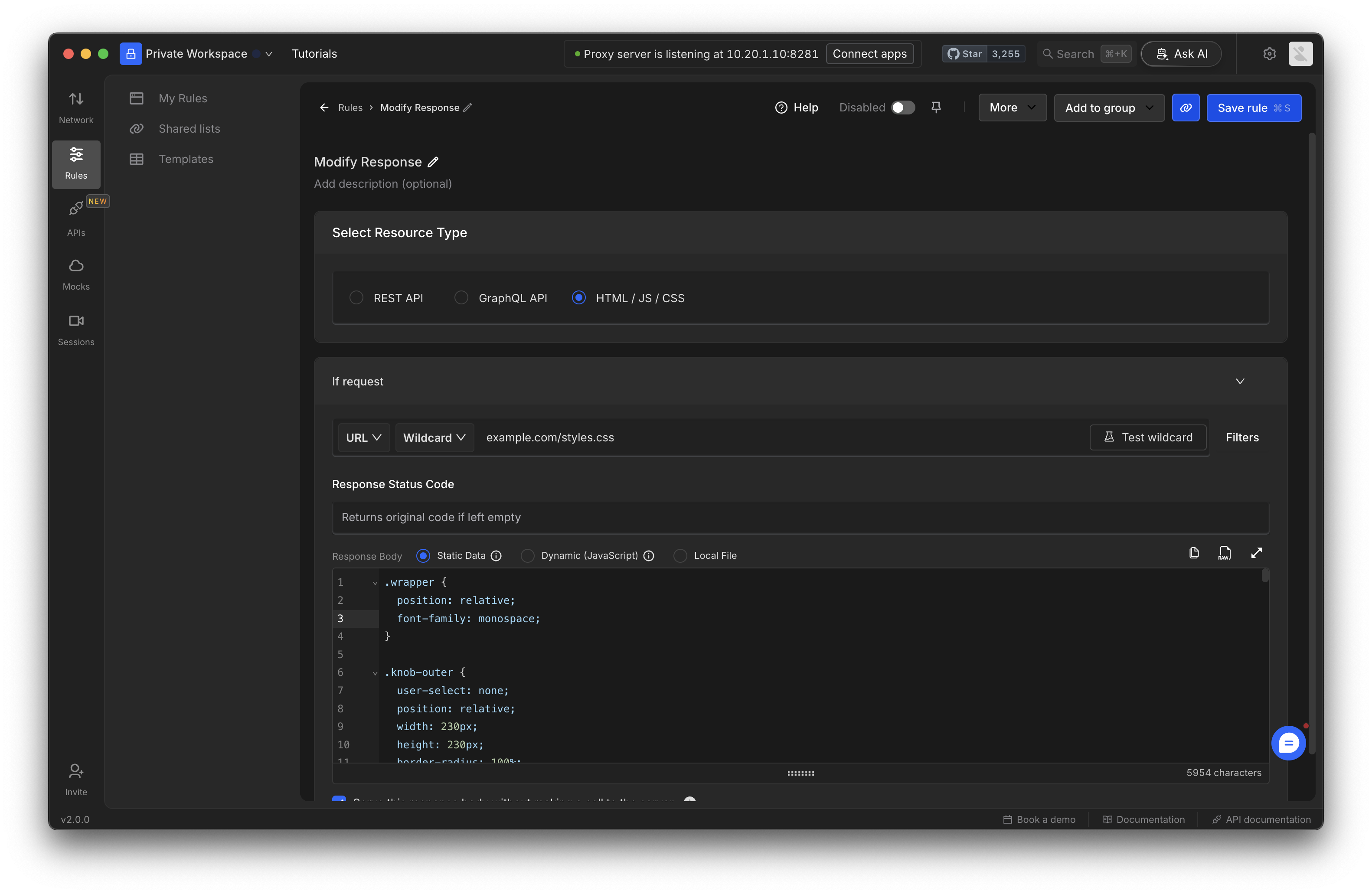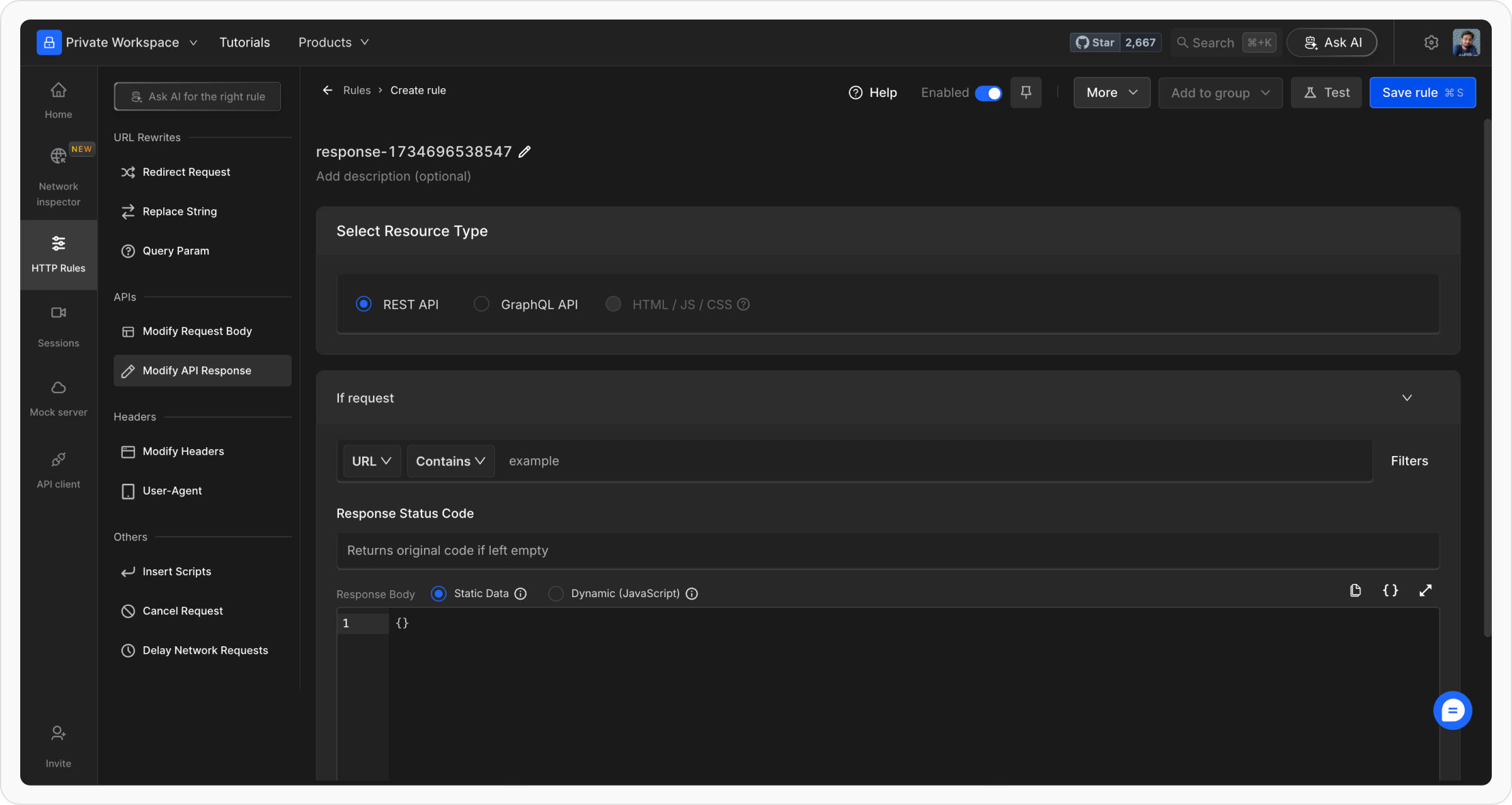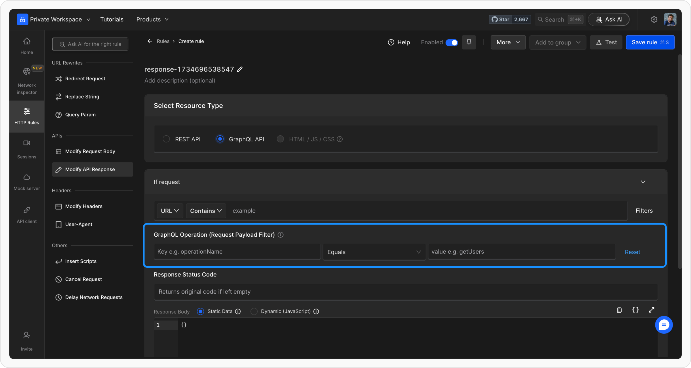 - Static Response Modification: Input a static value as the response body.