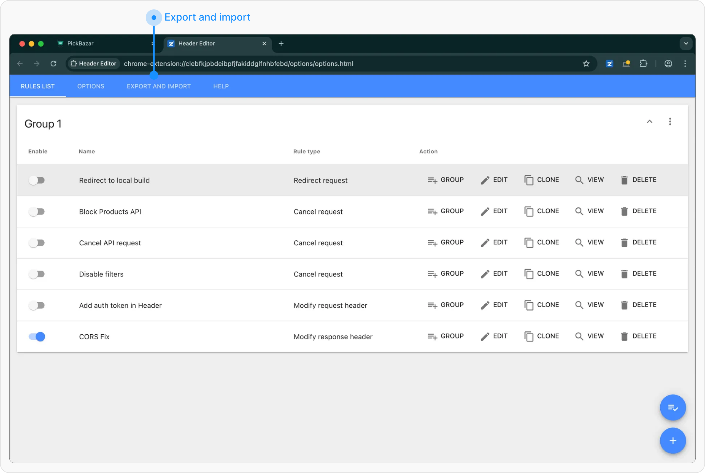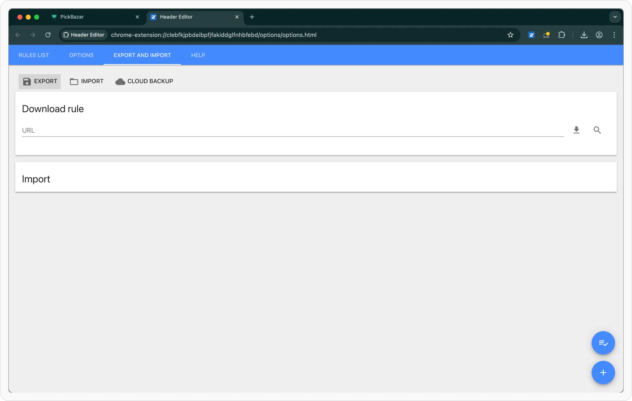 If you already have rules, click the Import button in the top-right corner, then select Import from Header Editor from the bottom of the popup.