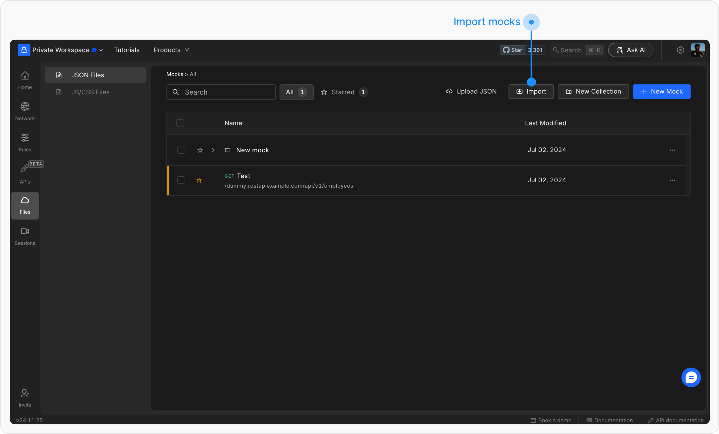Go to File Server. Under the JSON Files section, click on the Import button.