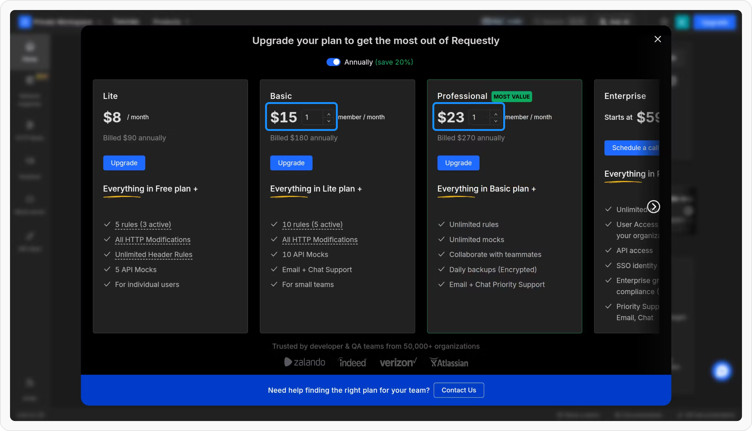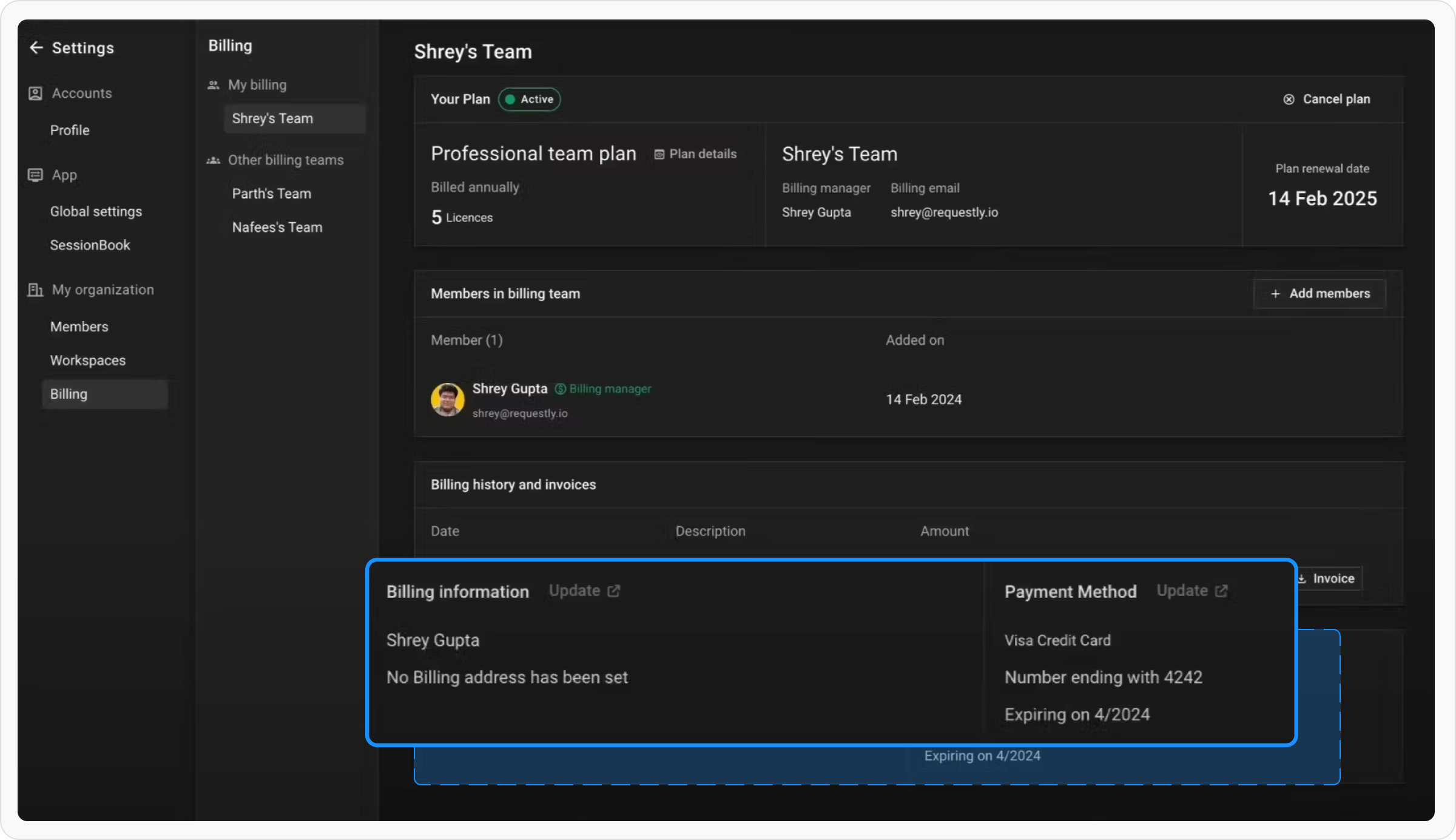 Efficient license management is essential for seamless operations. Requestly allows organizations to effortlessly manage their subscriptions and licenses.