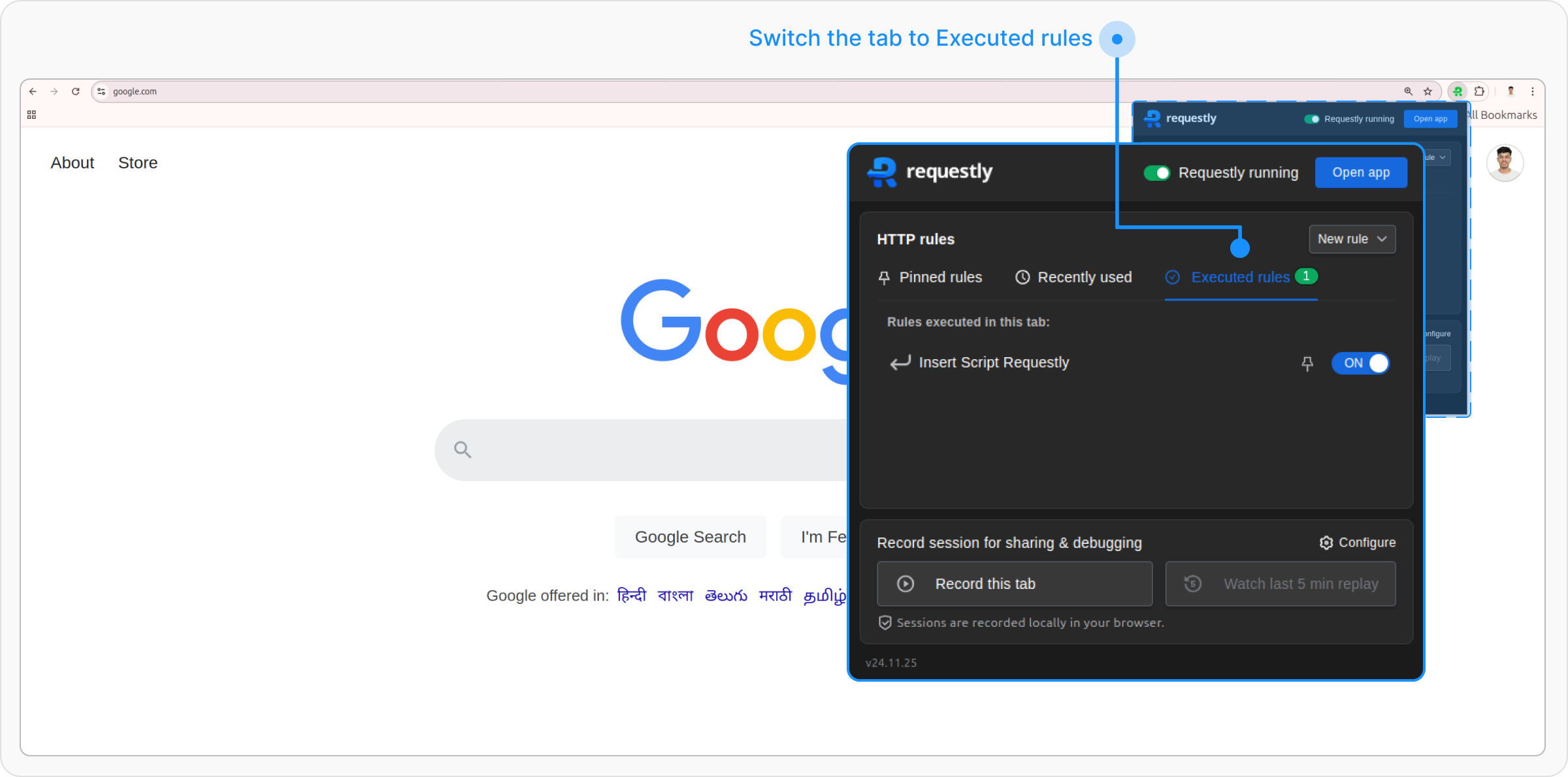 The way Requestly shows rule executions varies between the browser extension and desktop app, tailored to their respective environments:- Browser Extension