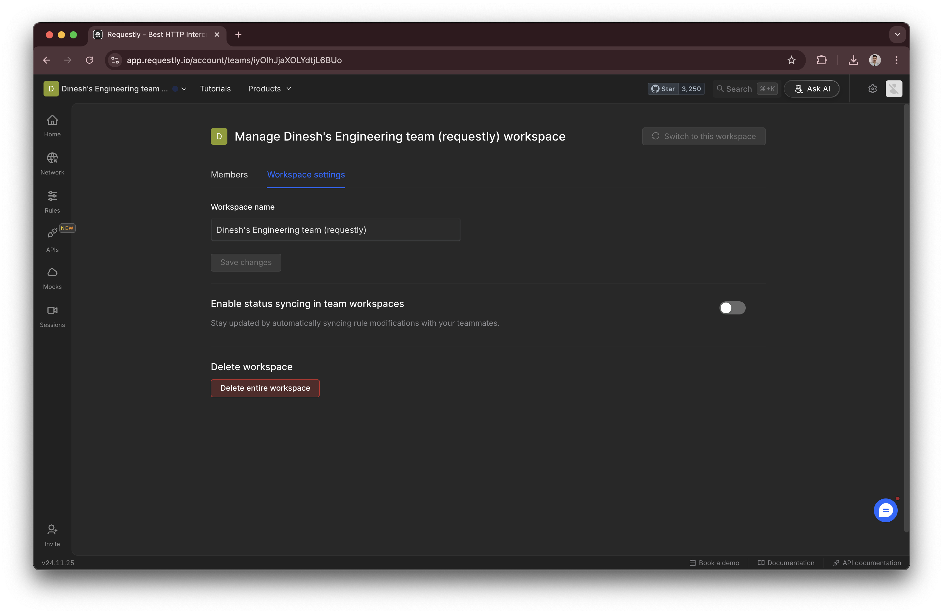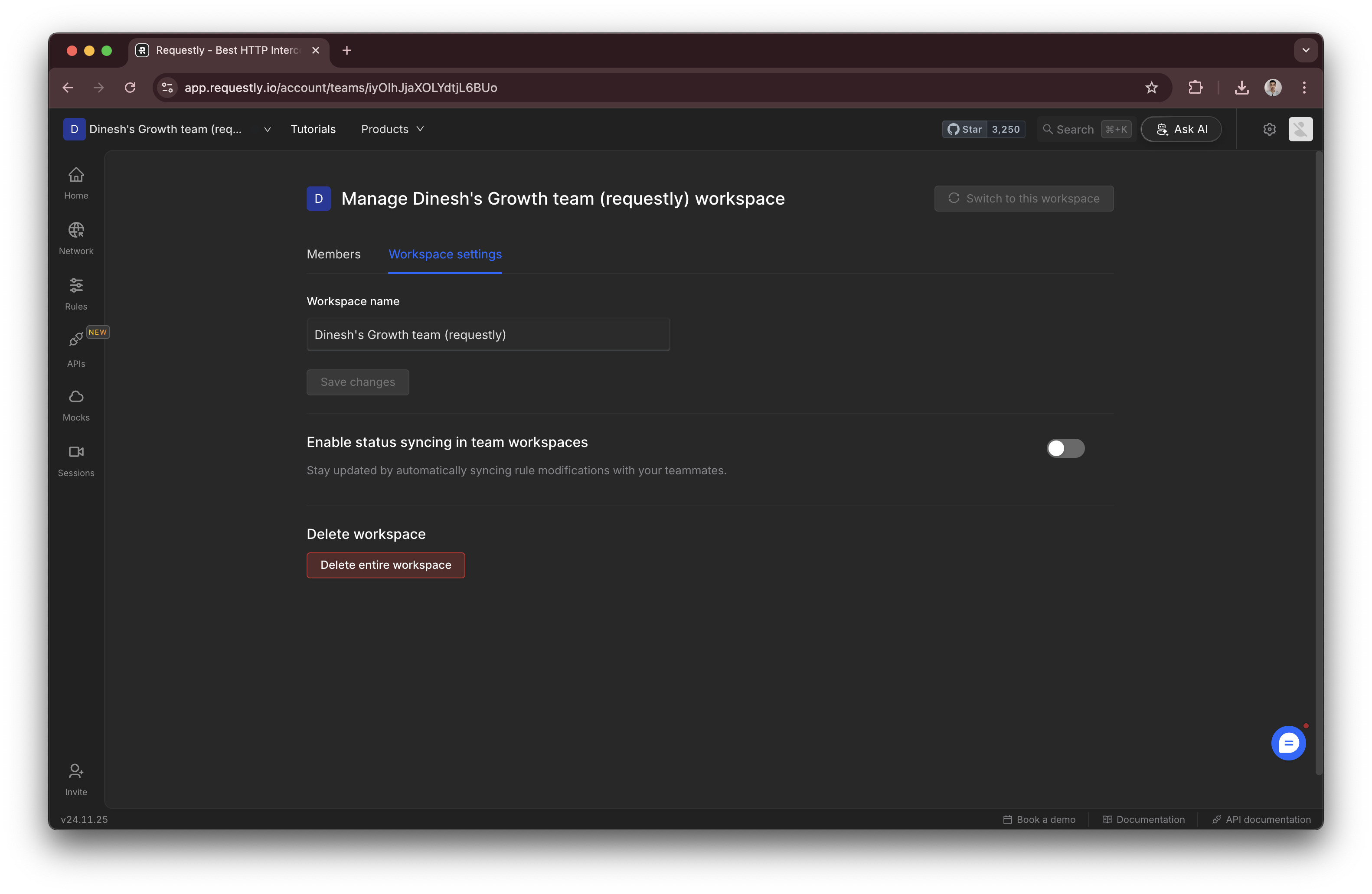 In the Requestly dashboard, locate and click on your workspace name at the top.