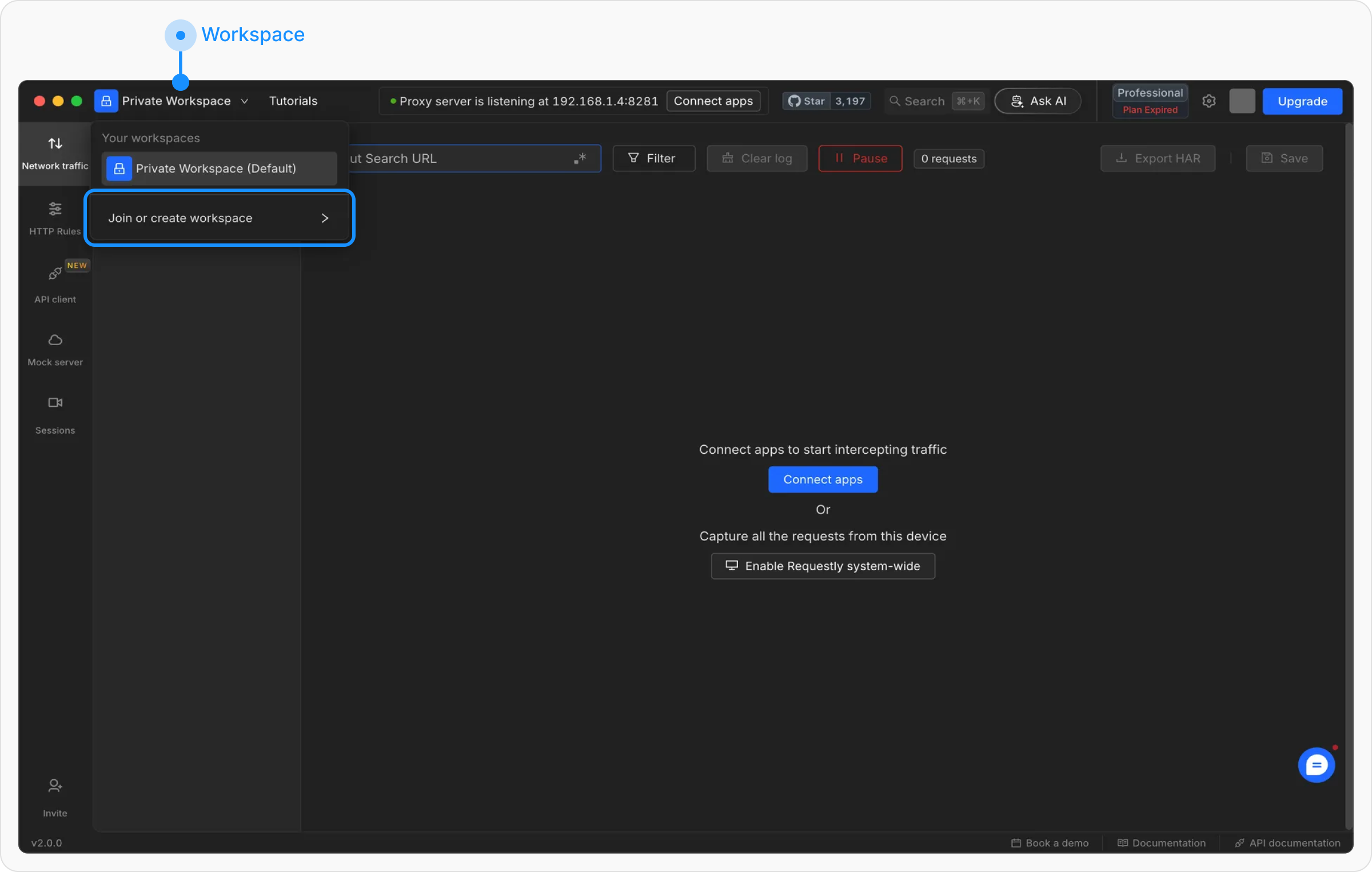 In the dropdown, click on “Join or Create Workspace” to access the workspace creation options, then select “Create Workspace” to start the setup
