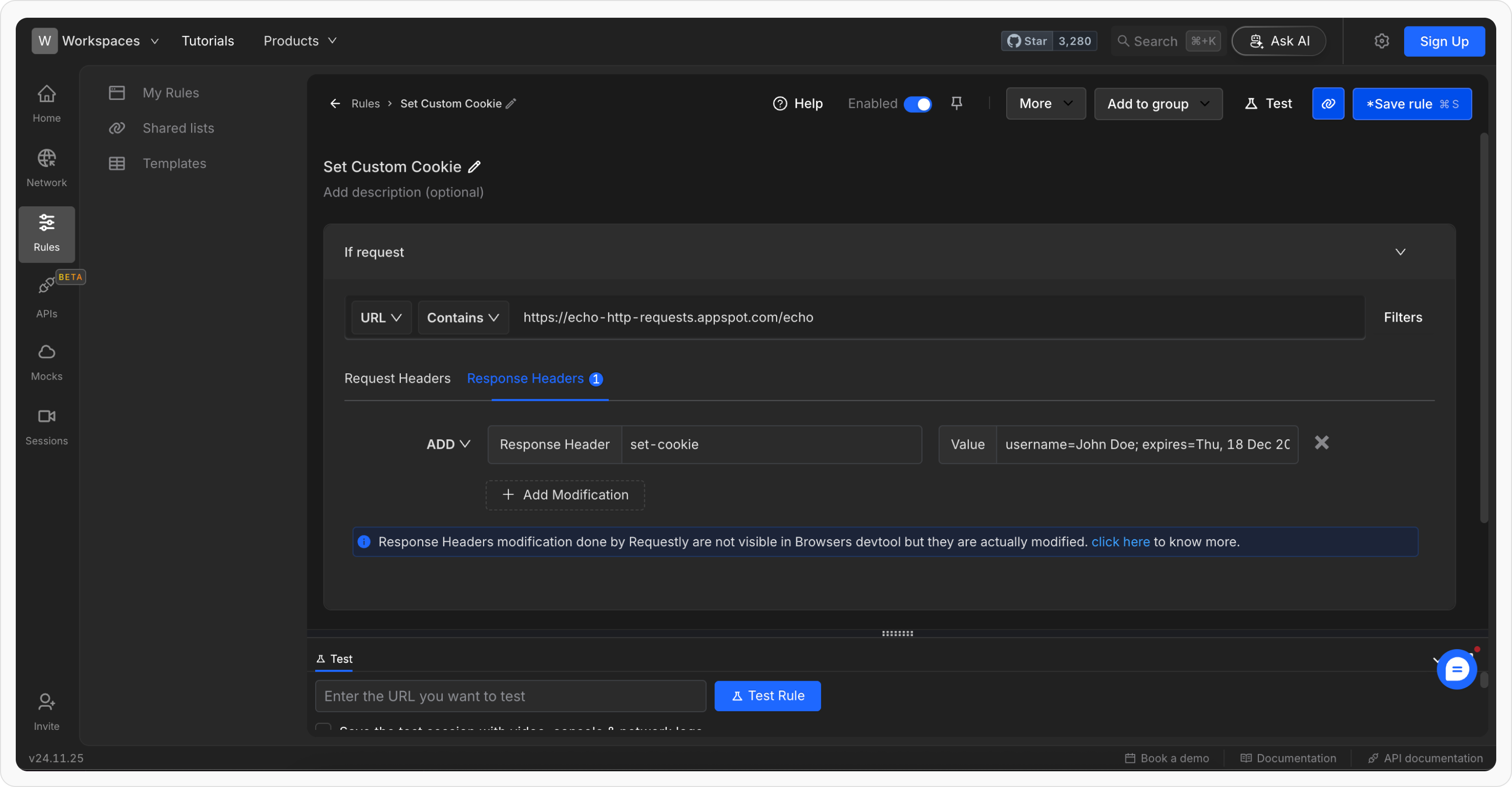 Give your rule a clear name like Set Custom Cookie. Optionally, add a short description so you can easily identify its purpose later.